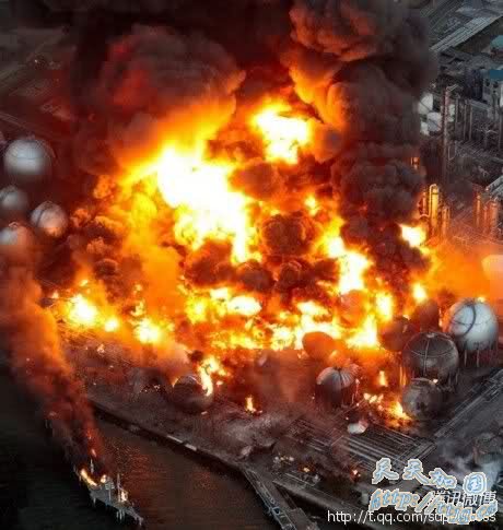 当地时间3月11日,日本千叶县市原市,爆炸起火的炼油厂浓烟滚滚。