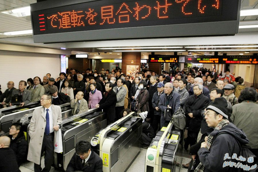 当地时间3月11日,日本东京,大批市民滞留在火车站。
