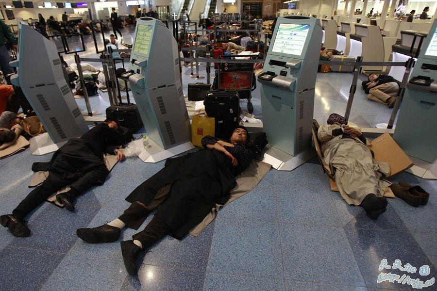 当地时间3月11日,日本东京羽田机场,大批旅客滞留。