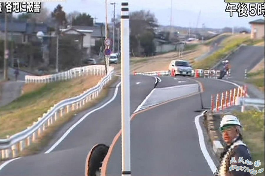 当地时间3月11日,地震导致日本埼玉县的公路开裂变形。