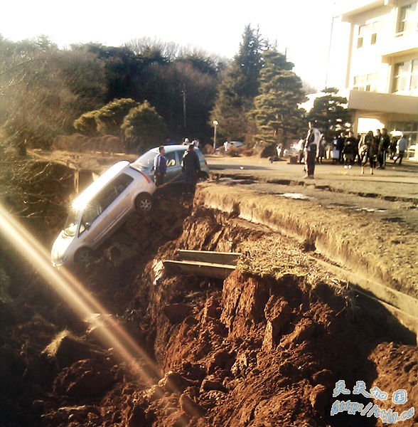 当地时间3月11日,日本福岛县矢吹町,震后的停车场路面裂开大缝。