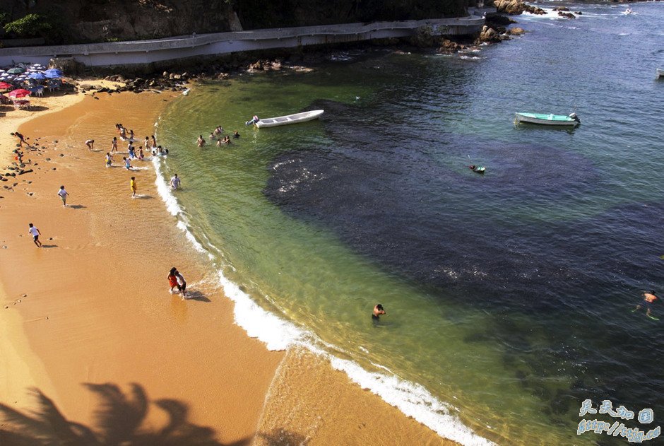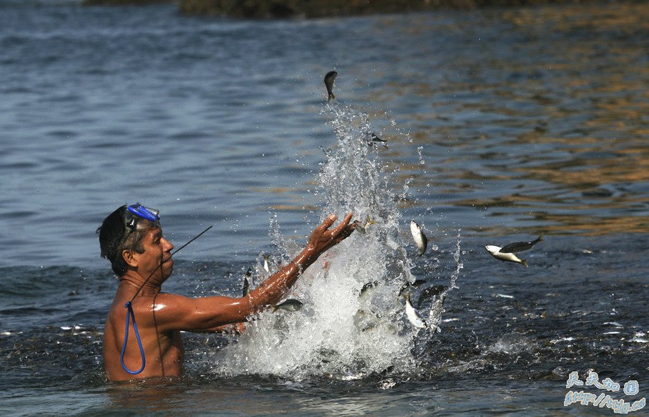 当地时间3月11日,墨西哥度假胜地阿卡普尔科一个海滩出现大批沙丁鱼、凤尾鱼、鲈鱼和...