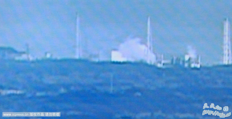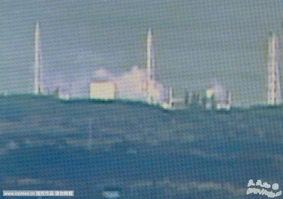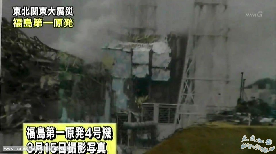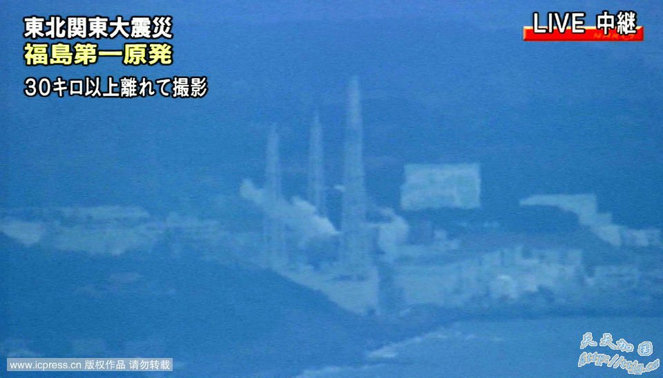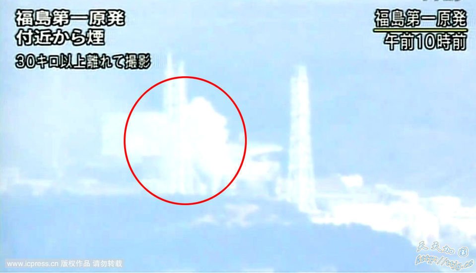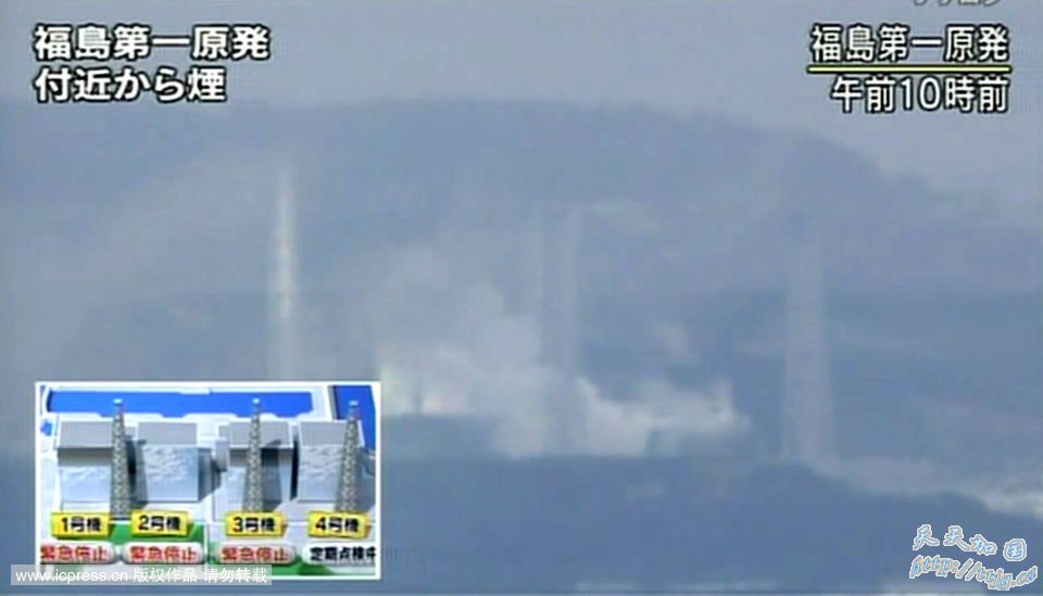 截屏图:当地时间2011年3月16日清晨5时45分,日本福岛第一核电站4号机组再次发生火情,30分钟后火焰自然熄灭,但仍有大量白烟冒出。
