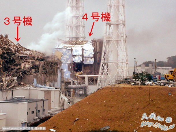 当地时间2011年3月16日,日本东京电力公司公布的图片,受损的福岛第一核电站3号(左)与4号反应堆。