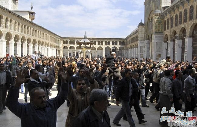 当地时间3月25日,数百名示威者从叙利亚首都大马士革老城区出发,进行游行抗议