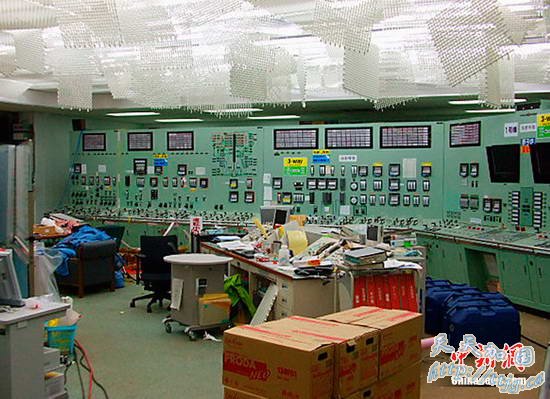 日本原子能安全保安院2011年3月23日发布的照片显示了福岛第一核电站内部建筑物受损情况。图为福岛第一核电站1号反应堆控制室。