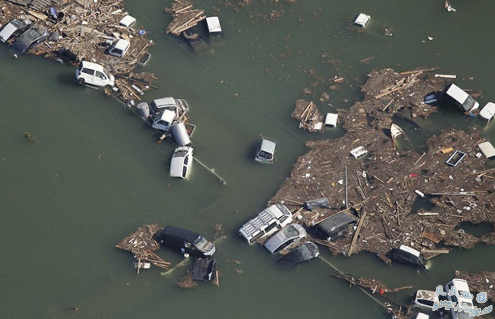 3月11日东日本9级强震引发海啸后,灾区附近的太平洋海面常会见到被海啸卷到海中的车辆、牵引机和船只,及木材、塑料等各种残骸,偶尔还有整栋房屋。