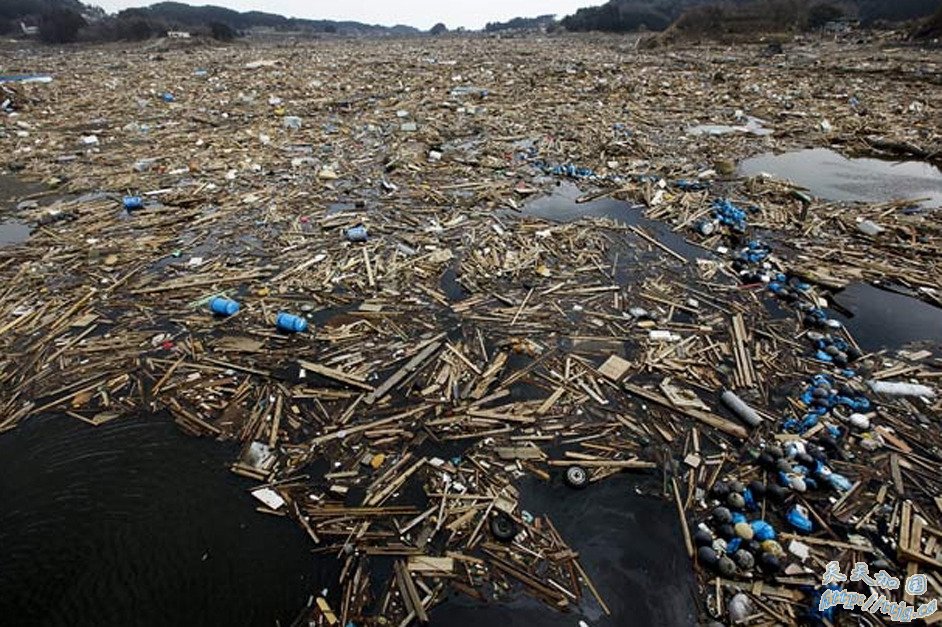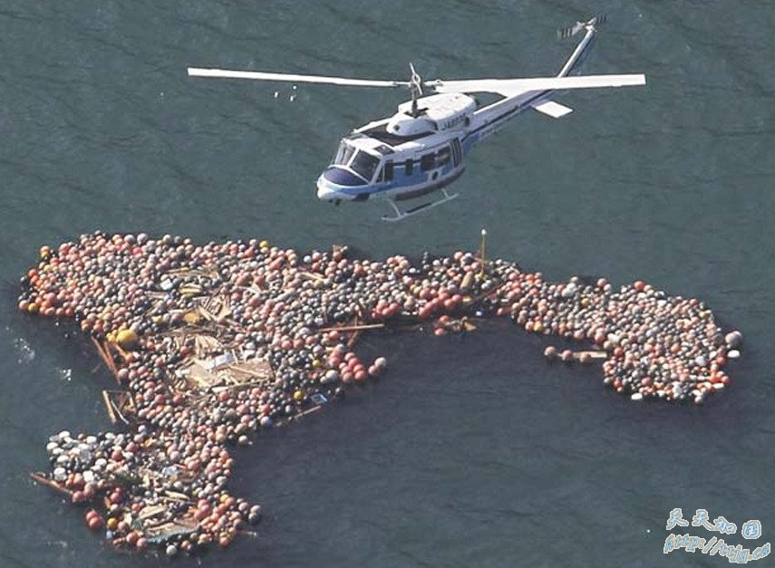 日本海啸冲走的房屋、汽车与人体等残骸正形成大片的垃圾岛,长约111公里,目前正在往美国西岸漂流,可能伤害海面船只,引发太平洋航线混乱。