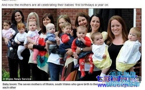 台湾今日新闻网综合报道,自从去年4月10日起,7位妈妈陆续在7个星期内产下自己的孩子,首先是一位名叫爱德华兹的妈妈生了一对双胞胎,随后她的6个邻居也都顺利生产。面对这“多喜临门”的妙事,其中一位妈妈戴维斯(Kirsty Davies)开心地说,“大伙同时间怀孕真的很太不可思议了!”
