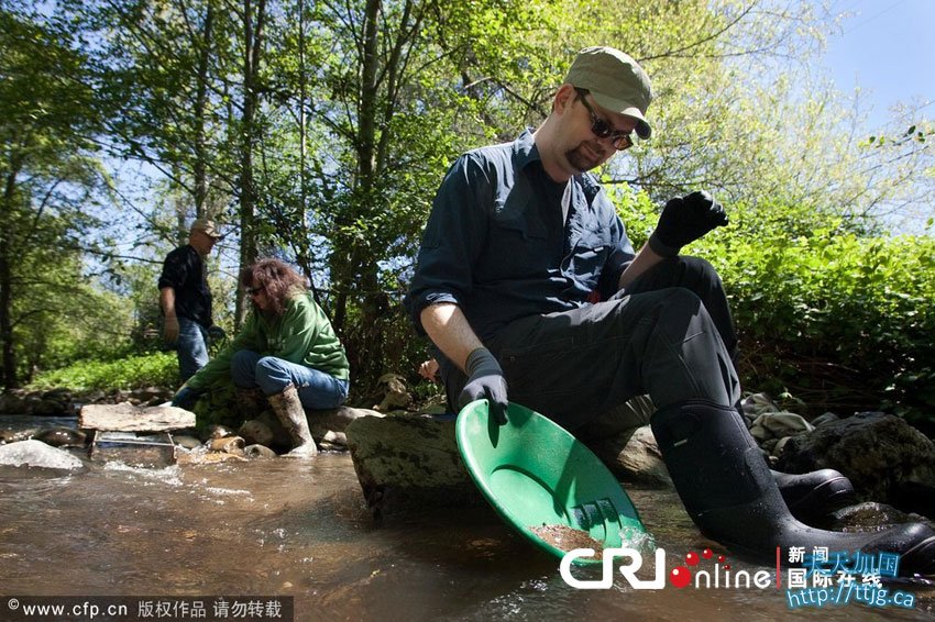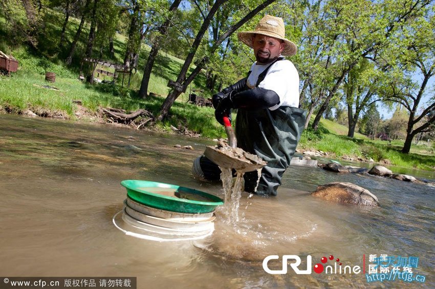 2011年4月29日,美国加利福尼亚,随着近期美元不断贬值和黄金身价上涨,当地人利用假期进山“淘金”。