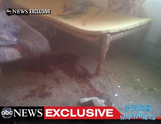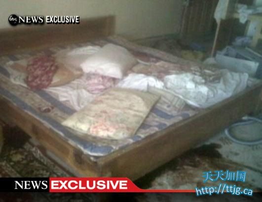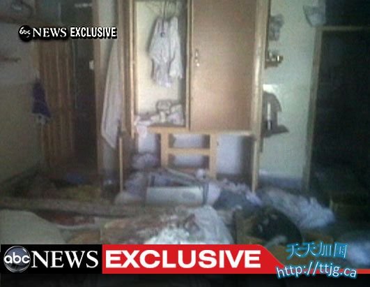 美国有线电视新闻网播出画面,显示了本·拉登被击毙时其藏身住所内部情况。该处住所位于巴基斯坦伊斯兰堡附近的阿伯塔巴德市。