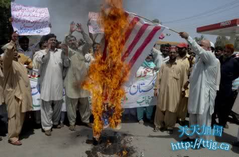 数百巴基斯坦民众游行 高呼美国去死 焚烧美国旗(图)