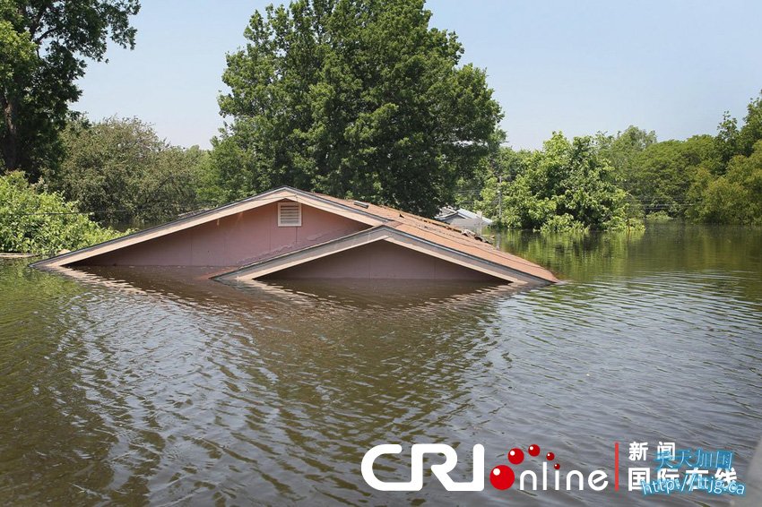 2011年5月12日,美国密西西比州维克斯堡,被洪水淹没的房屋。