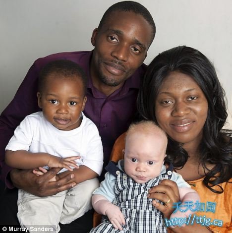 这对夫妇来自刚果,他们的第一个儿子具有明显的黑人特征。然而,当这位父亲看着刚出生的二儿子时,“非常震惊”,因为这个刚出生的婴儿浑身雪白,头发金黄,一点都没有父母的肤色特征。