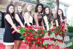 2011年花车大游行的七位玫瑰公主在玫瑰宫前亮相,左一为Senzaki。 (美国侨报 邱晨摄) 据美国《侨报》报道,2011年美国帕沙迪纳玫瑰花车大游行的七位公主11日...