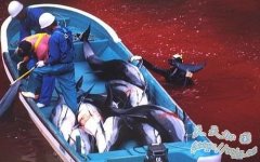 资料图片:2009年,日本太地町渔民屠杀海豚。 据外电报道,因大规模屠杀海豚而臭名昭著的日本一个小渔村太地町(Taiji)当地时间12日再次展开猎杀海豚的活动,仅...