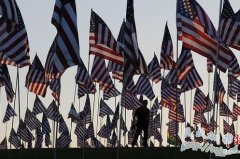 中国新闻网9月11日报道 当地时间9月10日,在美国加利福尼亚州的马里布,一些大学生在马里布佩珀代恩大学的草坪上插上近3000面美国国旗和其它国家和地区的旗帜,...