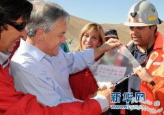 2010年8月22日智利塌方铜矿33人被困17天后仍生还8月22日,在智利北部城市科比亚波附近,智利总统皮涅拉(左)展示塌方铜矿被困矿工写的我们全部33人仍然活着字条。...