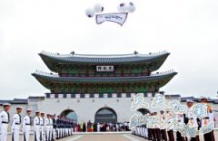 用数字技术还原了1865年景福宫重建时的汉字字体。 8月15日,韩国首尔,韩国政府在光化门广场举行光复65周年庆祝仪式。 光化门的牌匾恢复了朝鲜王朝时期使用的汉...