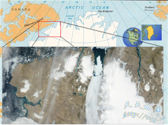 NASA的卫星图像显示彼得曼冰川前沿面积巨大的冰岛已经完全崩离飘入海洋。 网易探索去年前往北极彼得曼冰川进行气候考察时拍摄的照片。 ( 专题:网易新闻看北极...