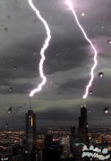 摄影师拍到闪电同时击中芝加哥两座标志建筑