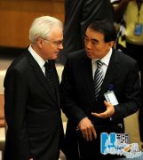 6月9日,在纽约联合国总部安理会会议厅,中国常驻联合国代表李保东(右)与俄罗斯常驻联合国代表丘尔金交谈。 当日,安理会将就制裁伊朗决议草案进行投票表决。...
