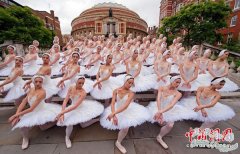 英国国家芭蕾舞团6月8日迎来60周年生日,60名舞蹈演员在伦敦皇家艾伯特大厅附近合影。英国国家芭蕾舞团将于本月9日至19日在皇家艾伯特大厅上演经典芭蕾舞剧天鹅...