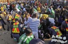 球迷蜂拥而入,警察疲于应付。 据香港《大公报》8日报道,2010年南非世界杯开幕在即,但安全问题一直惹人关注。朝鲜队与尼日利亚队6日举行热身赛期间,由于免收...