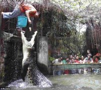 饲养员太淡定了! 如果你觉得这张照片真是触目惊心惊险无比的话,那么请想象一下这位动物饲养员的感受要知道,站在高处喂鳄鱼的他可是能一直看到这只猛兽的喉咙...