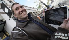 资料图片:4月3日,在美国加利福尼亚州帕萨迪纳市的苹果产品专卖店,贾森克里恩成为该店第一位得到的iPad的顾客。当天,苹果iPad平板电脑开始在美国上市销售。...