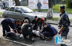 5月26日,救援人员在俄罗斯南部城市斯塔夫罗波尔的爆炸现场救助伤员。当日,斯塔夫罗波尔市中心发生爆炸事件,共造成6人死亡,约40人不同程度受伤。斯塔夫罗波...