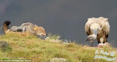 极其罕见的豺狼和秃鹰搏斗照片