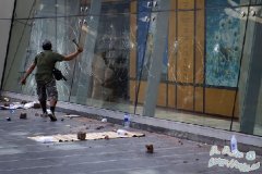 5月19日,泰国曼谷,一名红衫军示威者敲碎沿街楼房的玻璃。当天,红衫军主要领导人宣布结束示威并向警方自首后,仍有一些示威者不肯散去,并在曼谷大约20个地点...