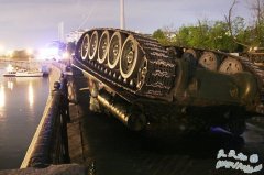 在闹市四仰八叉的苏-100自行火炮 装甲抢救车抵达现场 用钢索把苏-100翻过来 苏 -100被翻了过来 很皮实,一切正常 据俄罗斯《报纸报》5月12日消息,在5月9日举行...
