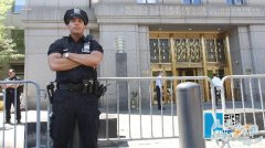 5月4日,一名警察在美国纽约曼哈顿纽约联邦南区法院警戒。纽约时报广场未遂事件嫌疑人、巴基斯坦裔美国人费萨尔沙阿扎德将于当天下午在该法院接受庭审。现年30...
