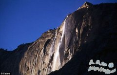 美国加州中部约塞米蒂国家公园的马尾瀑布 夕阳将马尾瀑布染成了美丽的琥珀色 国际在线4月22日报道 据《每日邮报》4月20日报道,野外女摄影师佩妮亚当斯在美国加...