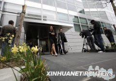 4月16日,在纽约曼哈顿,记者在高盛集团总部门口采访。美国证券交易委员会16日向纽约曼哈顿联邦法院提起民事诉讼,指控高盛集团在涉及次级抵押贷款业务金融产品...