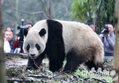 3月9日,大熊猫泰山正式结束为期一个月的隔离检疫,搬进卧龙中国大熊猫研究中心雅安碧峰峡基地豹子山别墅区5号别墅开始与公众见面。中新社发刘忠俊摄 中国新闻...