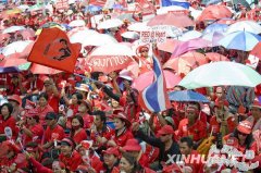 3月14日,泰国反政府组织红衫军成员在曼谷市中心集会。 当日,泰国红衫军反政府集会活动继续进行,各地红衫军成员前往曼谷参加示威游行。新华社记者吕小炜摄 图集...