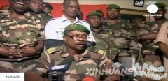 资料图片:这张2010年2月19日的电视截图显示,尼日尔政变军队发言人阿卜杜勒-卡里姆古可耶在尼日尔首都尼亚美发表电视讲话。西非国家尼日尔局势突变。位于首都...