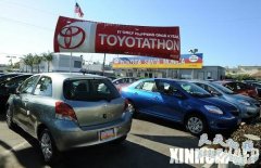 2010年2月3日,美国加利福尼亚州圣莫尼卡的一个丰田汽车公司经销商的销售点。美国运输部长雷蒙德拉胡德3日继续就油门踏板问题向日本丰田汽车公司施压,他说他将...