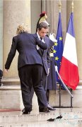 希拉里高跟鞋掉在台阶上。 萨科齐扶住掉了鞋的希拉里。 29日,法国爱丽舍宫,萨科齐扶住掉了鞋的希拉里,又搀扶着她找回鞋。法国总统萨科齐在总统府迎接到访的...