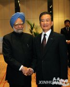 12月18日,中国国务院总理温家宝在哥本哈根会见印度总理辛格。新华社记者刘建生摄 (一) 印度与我们的地理距离并不遥远,喜马拉雅山的那边就是;但是,情感距...