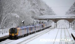 1月6日,在英国汉普郡,一列火车驶离车站。英国各地5日普遍遭遇严寒和大雪,恶劣天气导致包括伦敦在内的各地多个机场被关闭、铁路和公路交通受阻、数百所学校停...