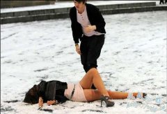 女子尺度大开雪地醉卧 英伦街头迎新年醉鬼真多!