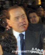 12月13日,在意大利米兰大教堂广场,面带血迹的意大利总理贝卢斯科尼在人们的簇拥下离开政治集会现...
