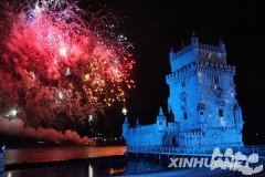 资料图片:12月1日,在葡萄牙首都里斯本举行的庆祝仪式上,焰火照亮世界文化遗产贝伦塔。当日,欧盟各机构领导人在里斯本举行仪式,庆祝《里斯本条约》正式生效...