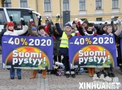 12 月12日,近百名民众在芬兰首都赫尔辛基市中心广场拉响警报器,向人们发出气候变化的警报。当天,在哥本哈根举行联合国气候变化大会之际,芬兰全国14个城市同...