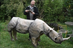 青绿色的犀牛栩栩如生。 埃里克乔塞尔用纸折出的其他艺术品,如手持玫瑰的优雅女士、滑稽的小丑和好斗的公鸡。 法国艺人埃里克乔塞尔的折纸技术精湛,他能用纸...