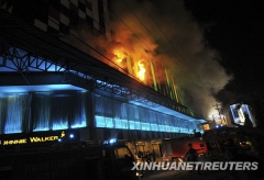 12月4日,在印度尼西亚北苏门答腊省的棉兰,发生火灾的歌厅冒出滚滚浓烟。警方称,该歌厅发生的火灾目前已经造成至少20人死亡、5人受伤。新华社/路透 新华网雅...